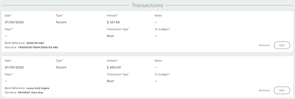 After the csv file is uploaded, each transaction should be edited with missing fields, and the existing default values changed as needed by the User.