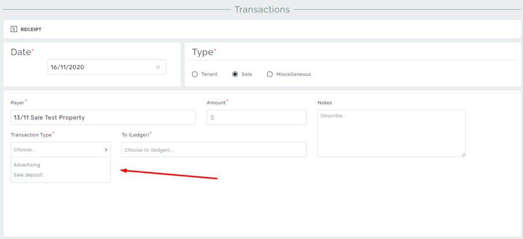 Deposit in trust – This shows the sale deposit receipts entered into our system. It is the representation of the field Deposit Received in the Sale details page.